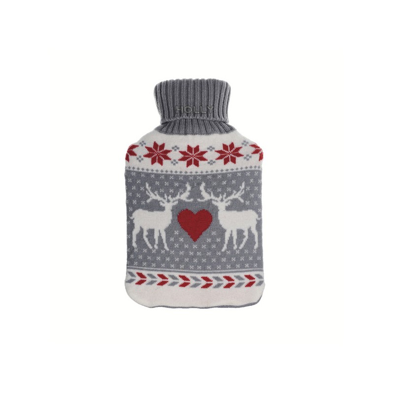 Bolsa Agua Caliente Mimo 1,7l Forro Gris/rojo Renos 20x32x4 Cm Flexible Y Agradable Al Tacto