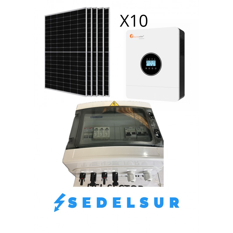 KIT SOLAR FELICITY AISLADA MONOFÁSICO 5KW: 10 Paneles 590w + Inversor + Monotorizacion + Cuadro cableado DC-AC + Puesta en march