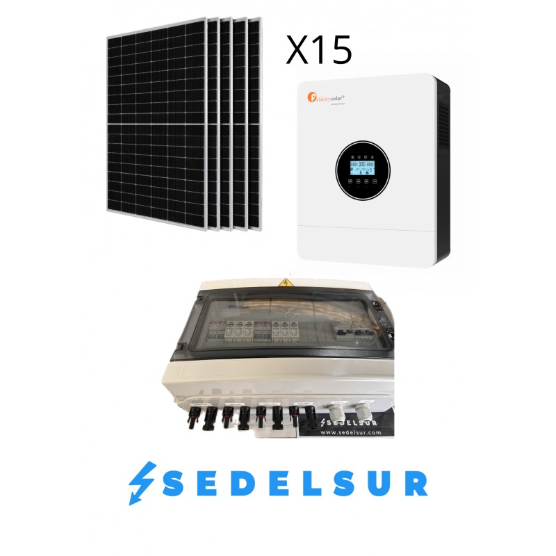 KIT SOLAR FELICITY AISLADA MONOFÁSICO 8KW: 15 Paneles 590w + Inversor + Monotorizacion + Cuadro cableado DC-AC + Puesta en march
