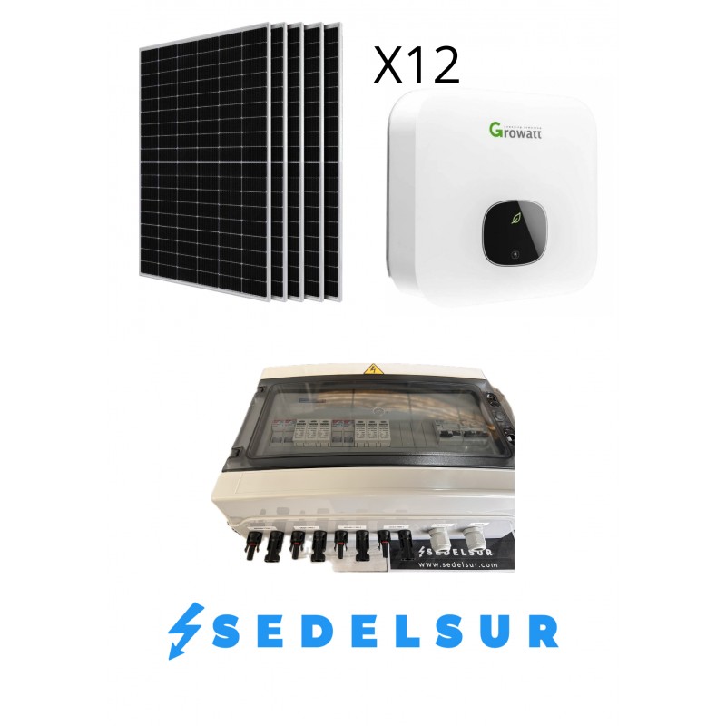 KIT SOLAR GROWATT HÍBRIDO MONOFÁSICO 6KW: 12 Paneles 580W + Inversor + Monotorizacion + Cuadro cableado DC-AC + Puesta en marcha