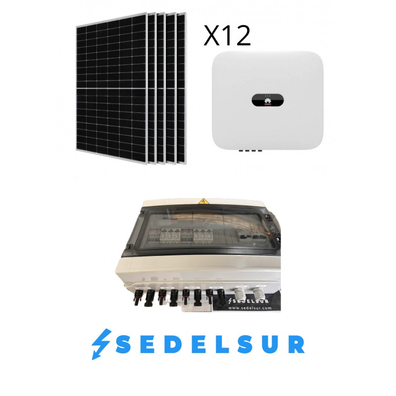 KIT SOLAR HUAWEI HÍBRIDO MONOFÁSICOS 6KW: 12 Paneles 580W + Inversor + Monotorizacion + Cuadro cableado DC-AC + Puesta en marcha