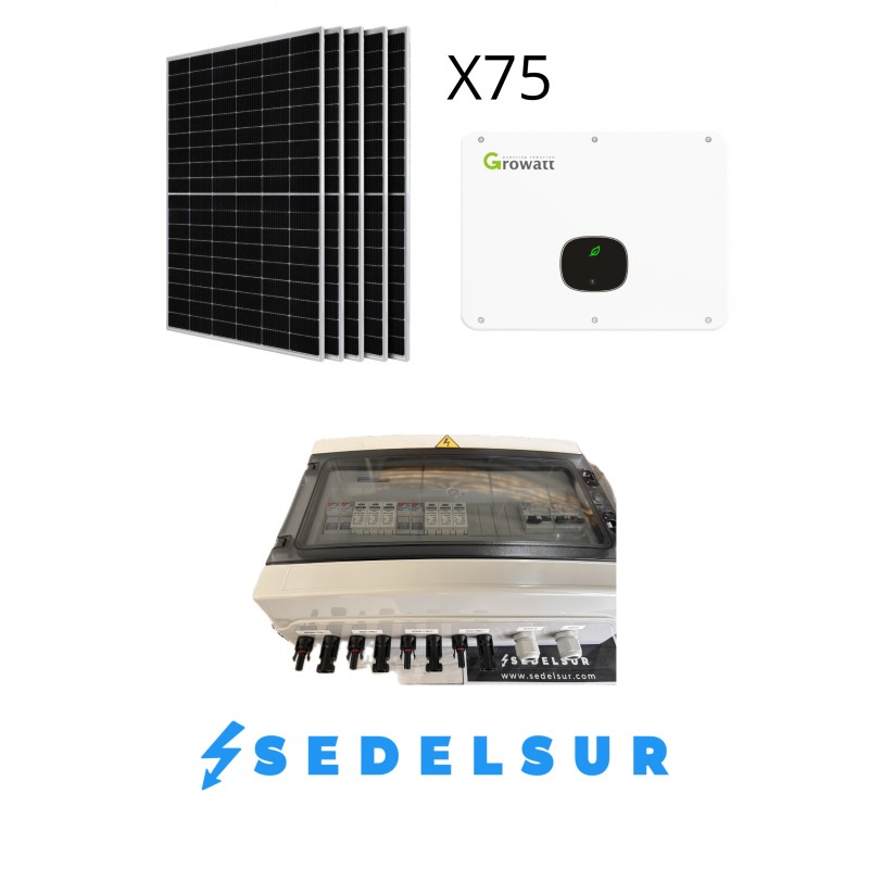 KIT SOLAR GROWATT AUTOCONSUNO TRIFASICO 40KW: 75 Paneles 580W + Inversor + Monotorizacion + Cuadro cableado DC-AC + Puesta en ma